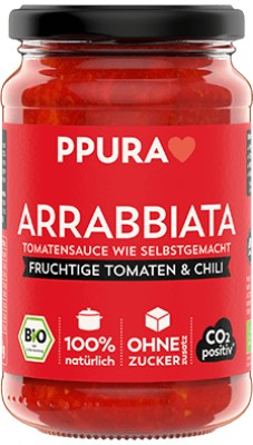 Tolle Bio Tomatensauce Arrabiata, aus fruchtigen, sonnengereiften Tomaten und einem Hauch von Chili, Knoblauch & Zitronensaft.